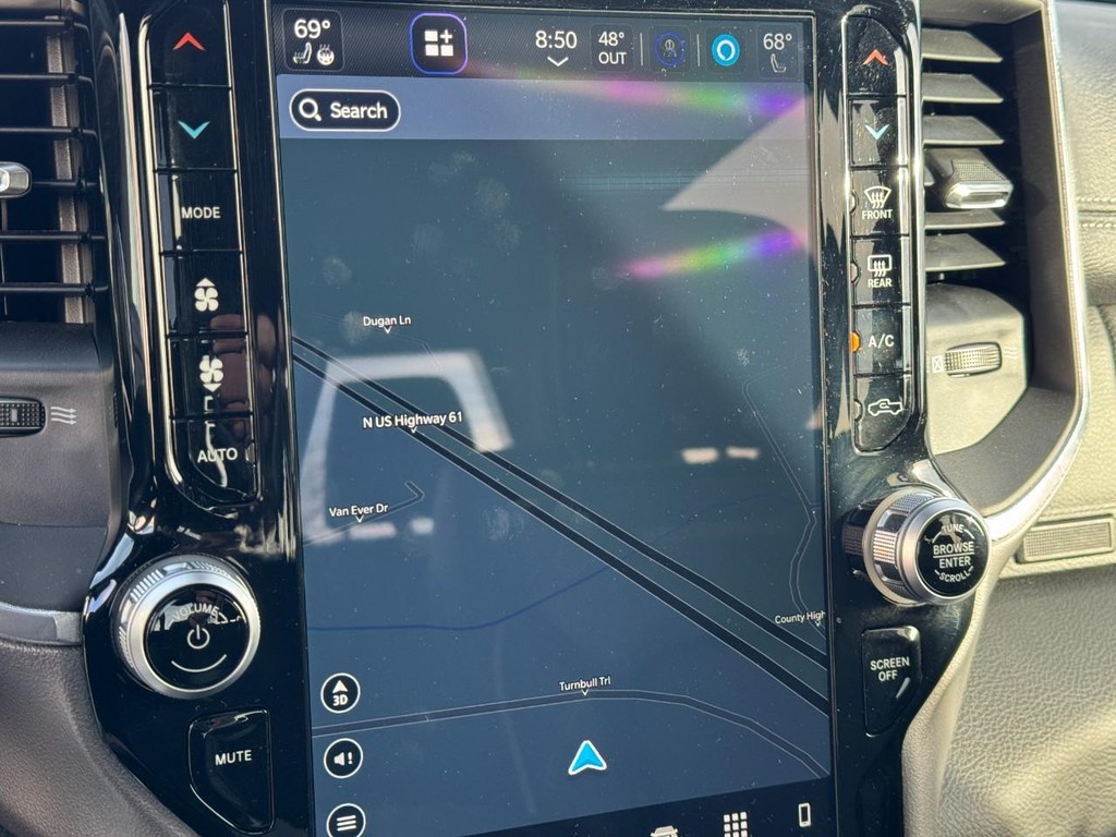CALL (636) 775-2900 FOR MORE INFORMATION, ONE OWNER, CLEAN VEHICLE HISTORY NO ACCIDENTS, LOCAL TRADE, BLUETOOTH, REAR BACK UP CAMERA, REAR PARKING SENSORS, APPLE CARPLAY / ANDROID AUTO, NAVIGATION / NAV / GPS, HEATED LEATHER SEATS, COOLED SEATS, HEATED STEERING WHEEL, CRUISE CONTROL, ADAPTIVE CRUISE CONTROL, AWD / 4 WHEEL DRIVE, REMOTE VEHICLE START, ALLOY WHEELS, SIDE BLIND ZONE ALERT, BED LINER, MEMORY SEAT, SATELLITE RADIO, 1500 Laramie, 4D Crew Cab, HEMI 5.7L V8 Multi Displacement VVT eTorque, 8-Speed Automatic, 4WD, Diamond Black Crystal Pearlcoat, Black Leather. Laramie Level 1 Equipment Group (12" Touchscreen Display, 2nd Row In Floor Storage Bins, 4G LTE Wi-Fi Hot Spot, Apple CarPlay, Auto High Beam Headlamp Control, Blind Spot & Cross Path Detection, Connected Travel & Traffic Services, Connectivity - US/Canada, Disassociated Touchscreen Display, Electric Shift-On-Demand Transfer Case, Foam Bottle Insert (Door Trim Panel), For Details, Visit DriveUconnect.com, For More Info, Call 800-643-2112, Front Door Accent Lighting, Front LED Fog Lamps, Global Telematics Box Module (TBM), Google Android Auto, GPS Antenna Input, GPS Navigation, HD Radio, Integrated Center Stack Radio, Integrated Voice Command w/Bluetooth, LED Reflector Headlamps, Radio: Uconnect 5 Nav w/12.0" Display, Rain Sensitive Windshield Wipers, Rear Door Accent Lighting, Rear Power Sliding Window, Rear Window Defroster, Remote Tailgate Release, SiriusXM Radio Service, SiriusXM w/360L, and USB Host Flip), Quick Order Package 27H Laramie, Sport Appearance Package (Black Interior Accents, Body Color Exterior Mirrors, Body Color Front Bumper, Body Color Premium Power Mirrors, Body Color Rear Bumper w/Step Pads, Grille Surround 3 Body Color Tex 2 Black, RAM Grille Badge - Chrome, Sport Decal, Sport Performance Hood, and Wheels: 20" x 9" Premium Painted w/Inserts), 1500 Laramie, 4D Crew Cab, HEMI 5.7L V8 Multi Displacement VVT eTorque, 8-Speed Automatic, 4WD, Diamond Black Crystal Pearlcoat, Black Leather, #1 Seat Foam Cushion, 10 Speakers, 3 Rear Seat Head Restraints, 3.21 Rear Axle Ratio, 4 Way Front Headrests, 4-Wheel Disc Brakes, 48V Belt Starter Generator, ABS brakes, Adjustable pedals, Air Conditioning, Alloy wheels, AM/FM radio: SiriusXM with 360L, Apple CarPlay/Android Auto, Audio memory, Auto-dimming door mirrors, Auto-Dimming Exterior Driver Mirror, Auto-dimming Rear-View mirror, Automatic temperature control, Brake assist, Bumpers: chrome, Chrome Exterior Mirrors, Class IV Receiver Hitch, Compass, Convex Wide-Angle Exterior Mirror Insert, Delay-off headlights, Driver door bin, Driver Seat Memory, Driver vanity mirror, Dual front impact airbags, Dual front side impact airbags, Electronic Stability Control, Exterior Mirrors Courtesy Lamps, Exterior Mirrors w/Heating Element, Exterior Mirrors w/Memory, Exterior Mirrors w/Supplemental Signals, Front anti-roll bar, Front Center Armrest w/Storage, Front dual zone A/C, Front fog lights, Front License Plate Bracket, Front reading lights, Front Seat Back Map Pockets, Front wheel independent suspension, Fully automatic headlights, Garage door transmitter, Heated door mirrors, Heated Front Seats, Heated front seats, Heated Steering Wheel, Heated steering wheel, Illuminated entry, Leather steering wheel, Leather Trim 40/20/40 Bench Seat, Low tire pressure warning, Memory seat, Navigation System, Occupant sensing airbag, Outside temperature display, Overhead airbag, Overhead console, Panic alarm, ParkSense Front/Rear Park Assist w/Stop (DISC), ParkView Rear Back-Up Camera, Passenger door bin, Passenger vanity mirror, Pedal memory, Power 2-Way Driver Lumbar Adjust, Power 2-Way Passenger Lumbar Adjust, Power 8-Way Driver & Passenger Seats, Power door mirrors, Power driver seat, Power passenger seat, Power steering, Power windows, Power-Folding Mirrors, Radio data system, Radio: Uconnect 5 Nav w/8.4" Display, Rear 60/40 Folding Seat, Rear anti-roll bar, Rear seat center armrest, Rear step bumper, Rear Wheelhouse Liner Third Party sources are involved in the posting of incentives and sale prices. See salesperson for details and verification.